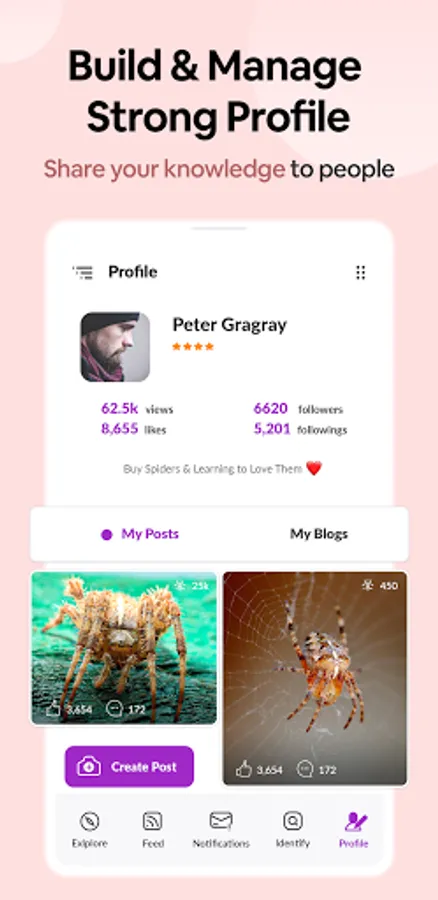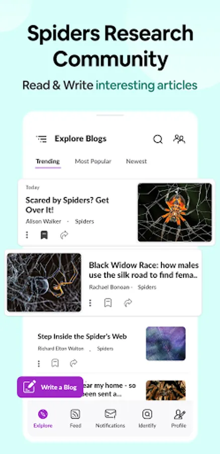 Share your bug and spider discoveries with friends and fellows. Our bug app allows you to share pictures of your finds directly from the app, fostering a community of bugs and spiders.