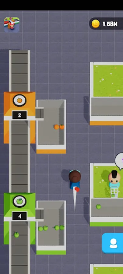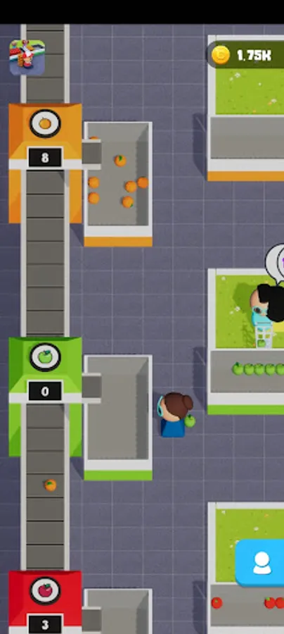 Stack up the fruits from the conveyor belt and store it on the shelves for customers to come and buy. Build a multi million dollar mart by upgrading your shelves, adding new fruits, adding extra staff, etc.
