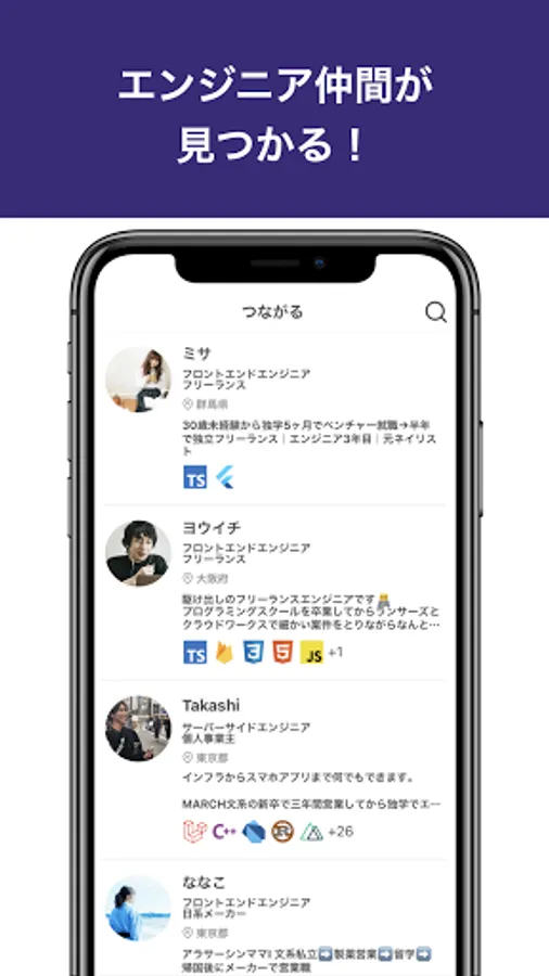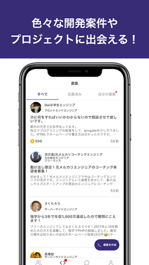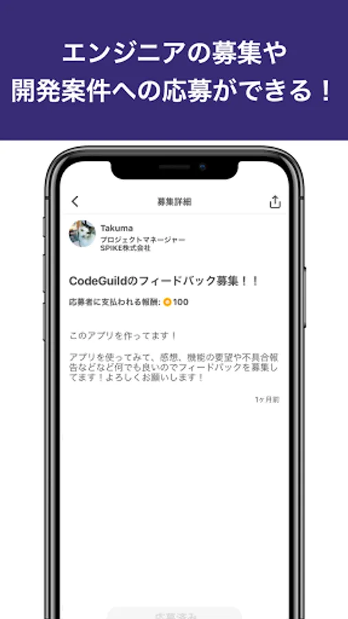 "Code Guild" is an SNS application for engineers who can meet fellow engineers and development projects.