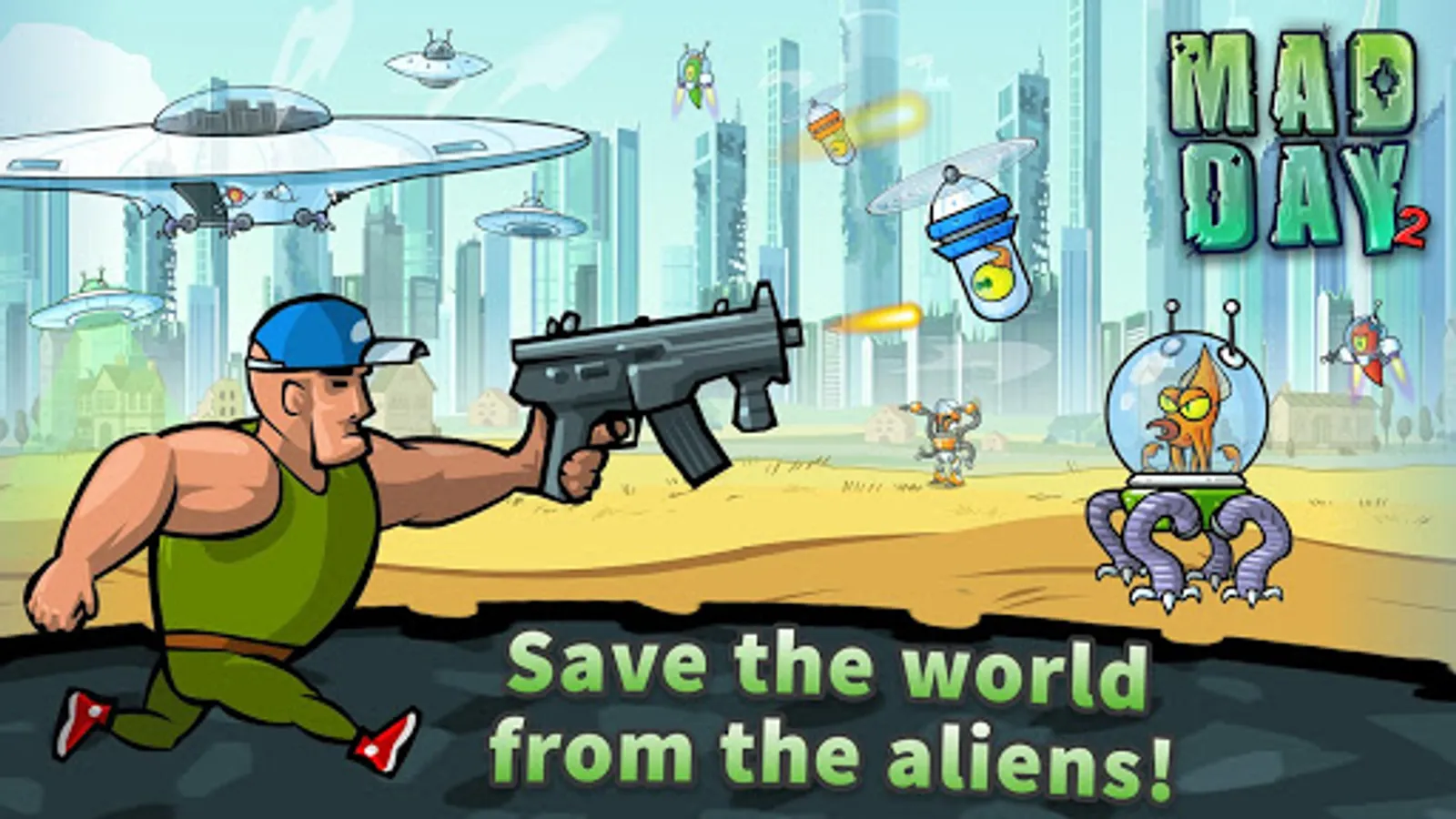 Ride, shoot, jump and smash your way to victory in this addictive runner. Team up with ex-Marine Bob to battle evil aliens who have invaded the planet. To make things even worse, they’ve kidnapped his beloved pet octopus. Needless to say that Bob is on a mission to make this an encounter that the aliens won’t soon forget!