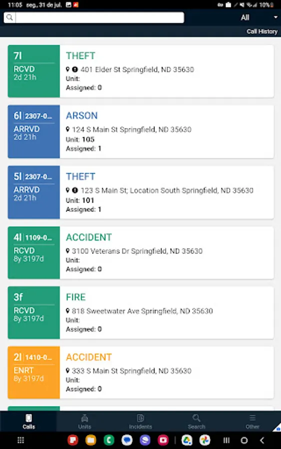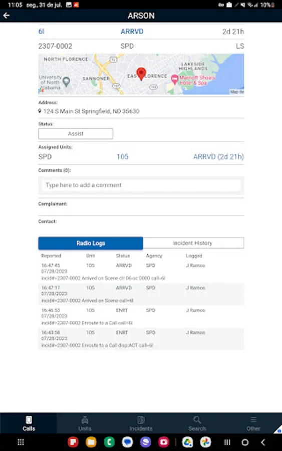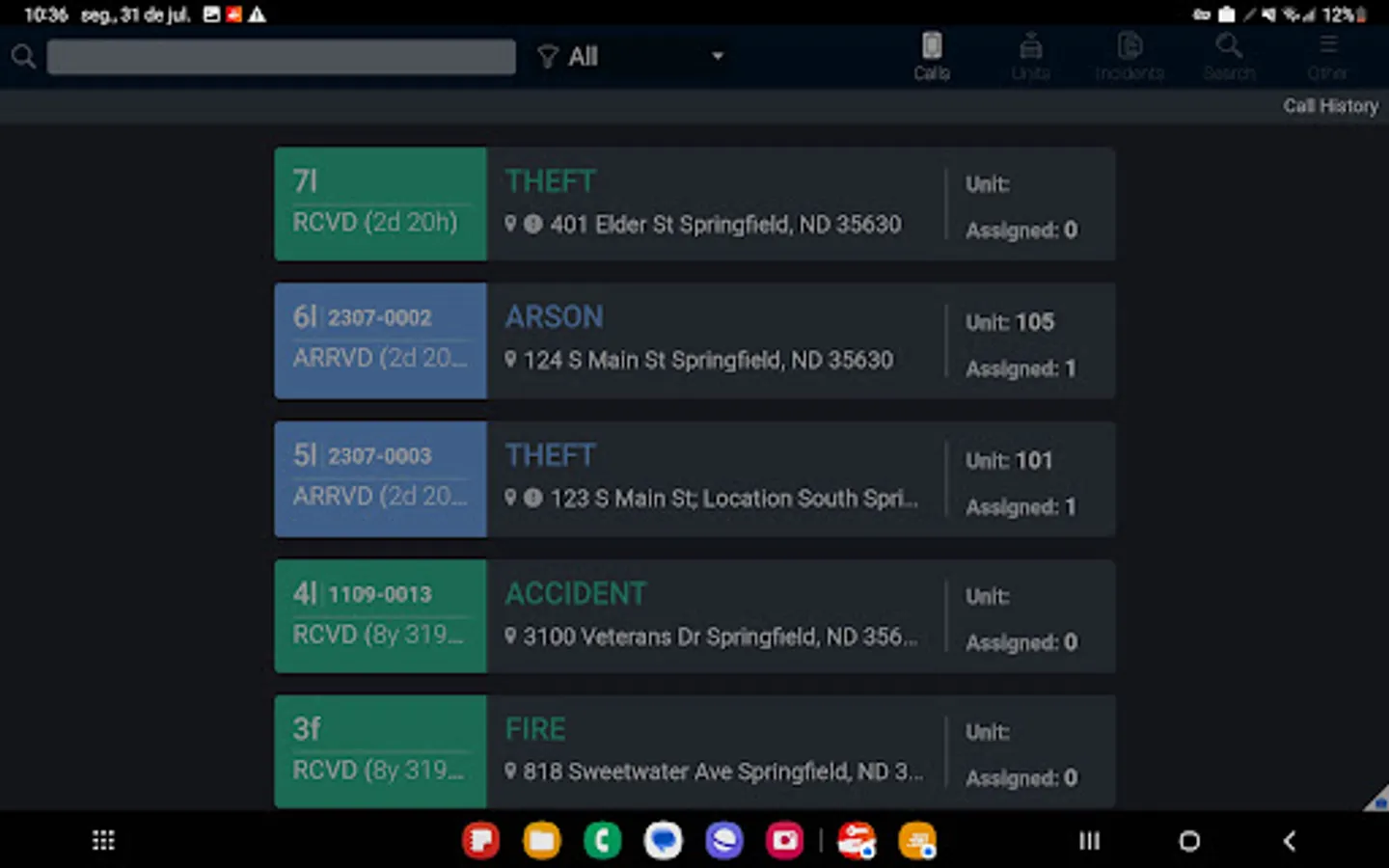 The user-friendly design makes it easy for personnel to quickly learn how to navigate the app. Flex Touch allows personnel to access real-time call updates by viewing all active calls, call nature, and any assigned units. Each user can customize the list of calls and units within the jurisdiction. Calls are organized by unit status, providing a quick way to see whether officers have arrived on the scene and if a unit’s timer has expired. When a user has been assigned to a call, that information is displayed prominently.