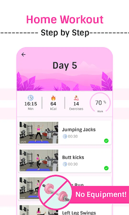 Home Workouts offers daily workouts for all of your major muscle groups. You may build muscles and keep fitness at home in only a few minutes a day, without needing to go to the gym. All exercises may be done with just your body, flexibility and no equipment or a coach.