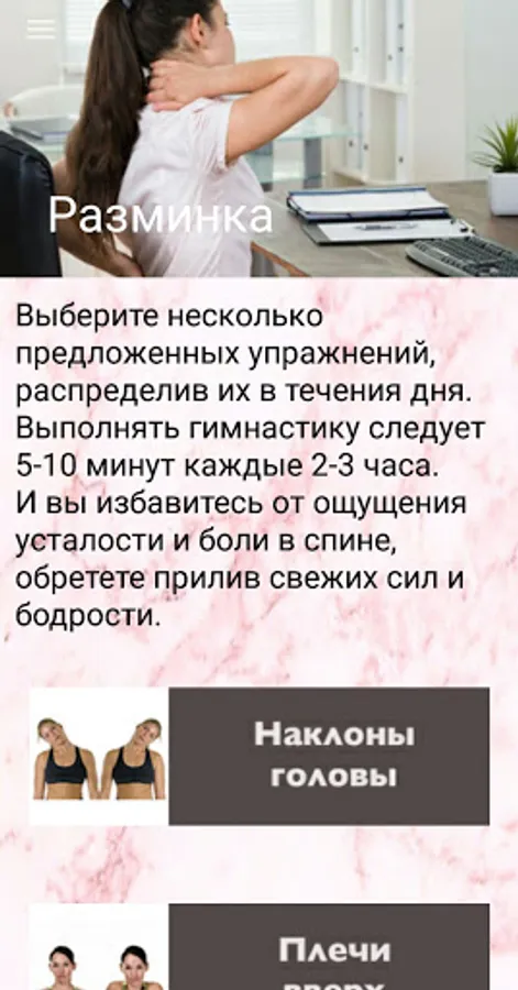 With the help of the application (Healthy back and straight posture. Warm-up for the back) you will forget about back pain forever and correct your posture.