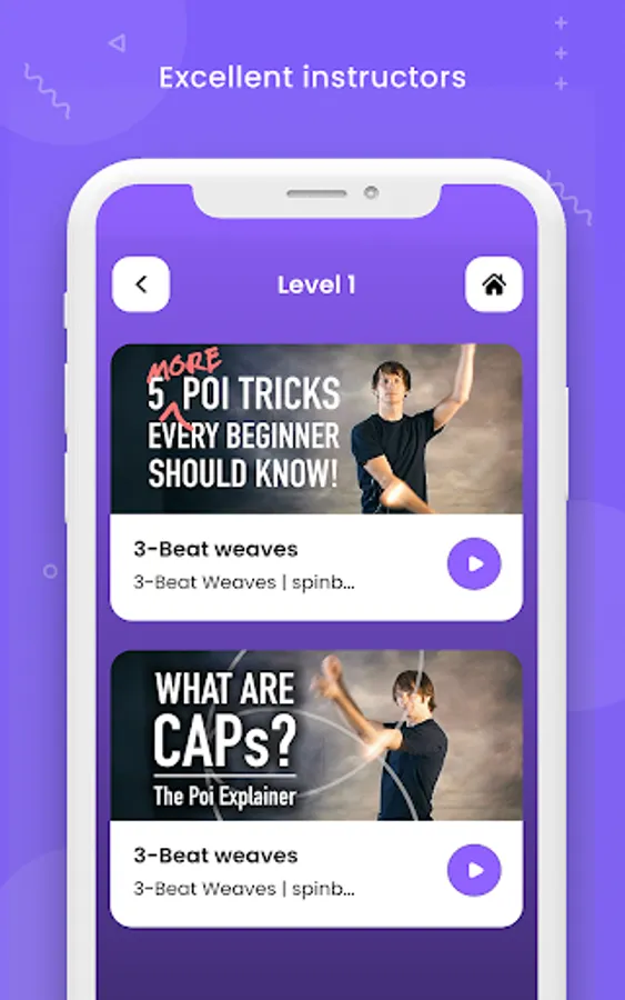 Instructional videos organized by level of difficulty