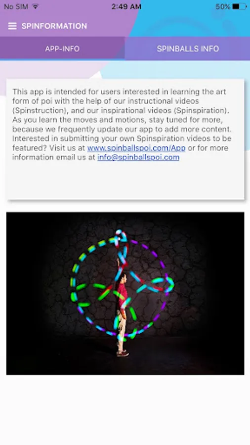 At Spinballs, we believe practicing poi makes people happier and healthier. As part of our mission to raise awareness and increase the visibility of poi, we have created this app to share content and make it easy for anyone to learn poi anywhere. Our goal is not only to produce the highest quality, affordable entry-level poi, but to also provide the tools needed for a great poi experience as you begin your journey into this amazing art form. To purchase our LED poi, visit www.spinballspoi.com.