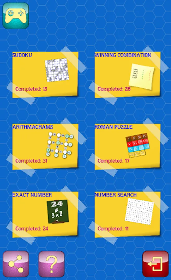 It contains Sudokus, Winning combination, Aritgramas, Puzzle Romano, Exact Number and Number Search.