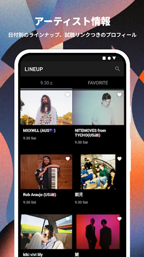 You can check the lineup of performing artists by appearance date. From the artist details, you can check the songs by linking various streaming services such as MV, Apple Music, Spotify.