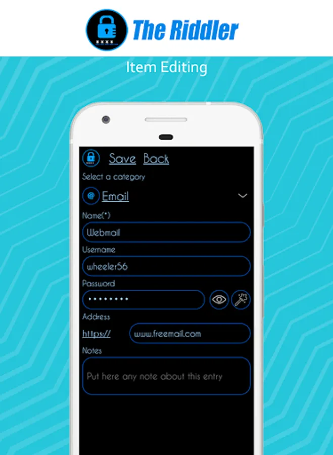 💡The Riddler password safe is the best tool to store and manage your passwords and accounts with your android mobile phone.