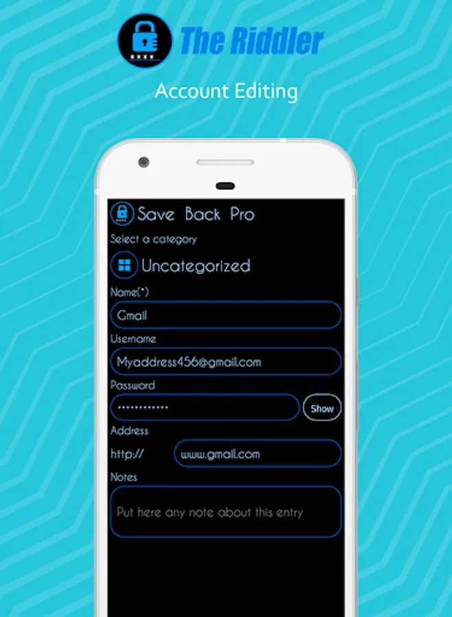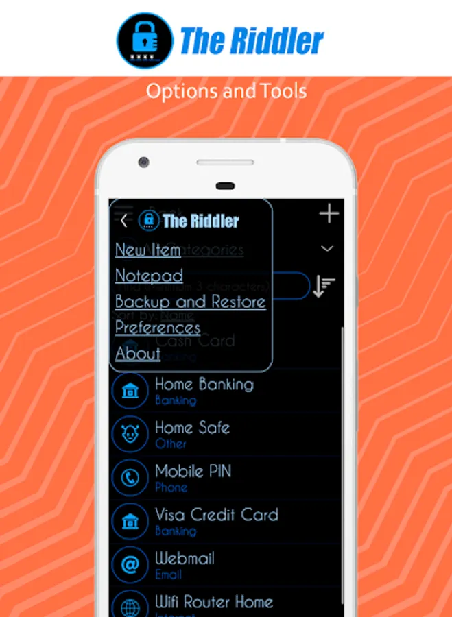 💡The Riddler password safe is the best tool to store and manage your passwords and accounts with your android mobile phone.