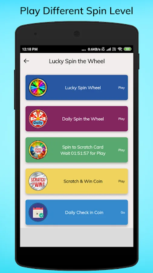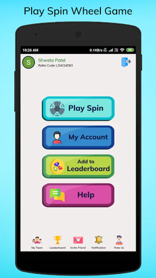 * Easy to play Lucky spin where you need to just tap the play button & wait for spin results.