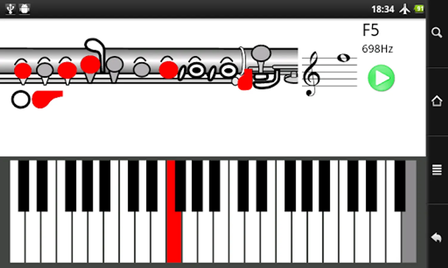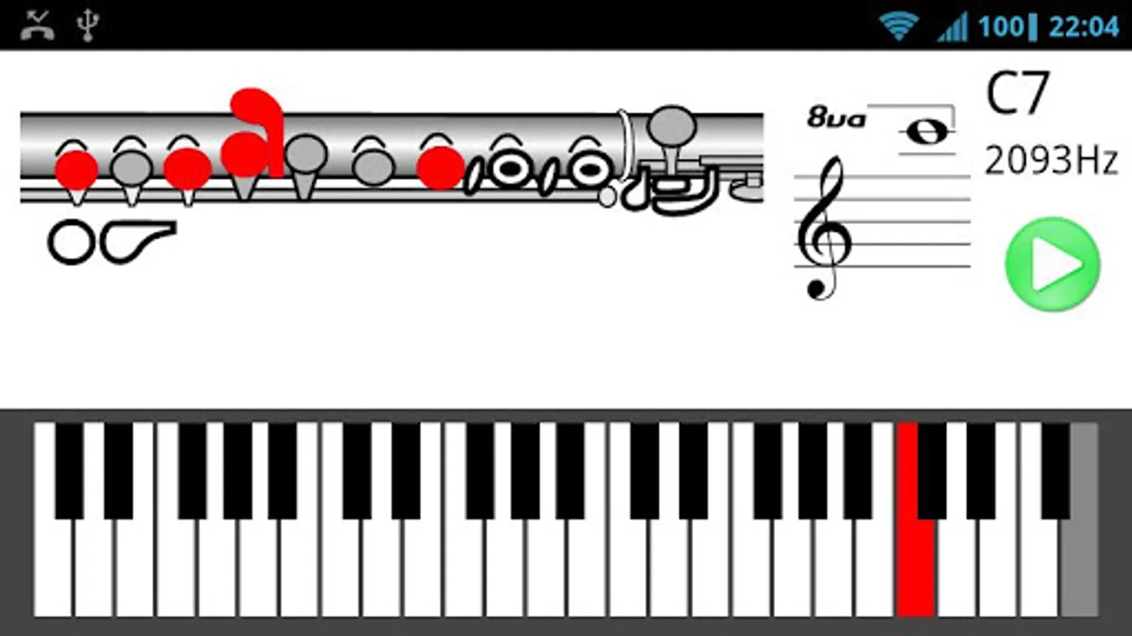 This application contains fingerings for play all tones from written C4 to F#7. Simply press the piano key to hear the flute sound and see the fingering.