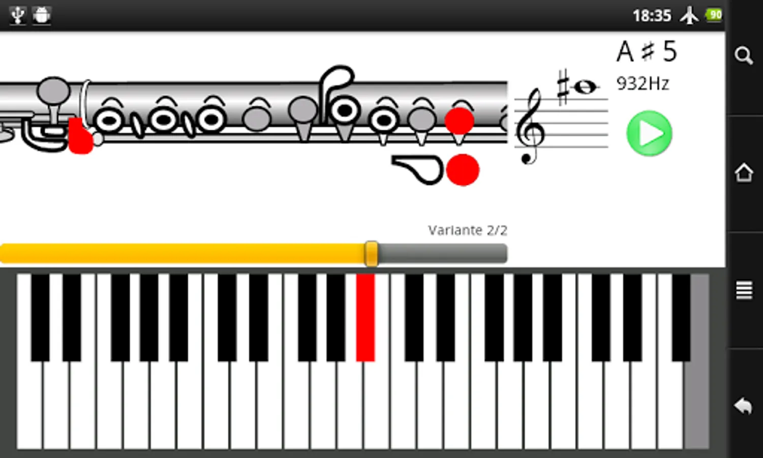 Let's play the sound on Android while playing your own flute to compare the pitch.