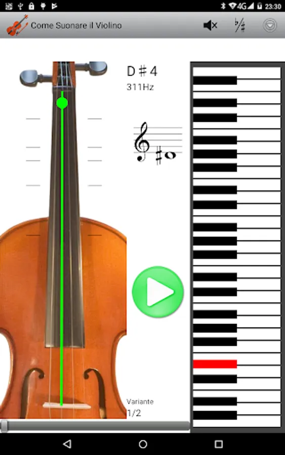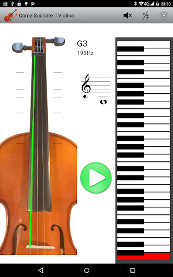 This application contains fingerings for play all tones from G3 to G7. Simply press the piano key to hear the violin sound and see the fingering.