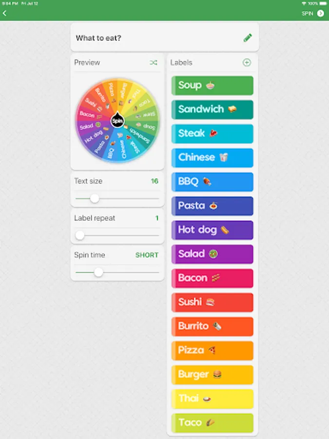 Spin The Wheel - Random Picker is an ultimate decision making fortune wheel app where you can create countless custom wheels of fortune, add as many customized labels as you want and spin away!