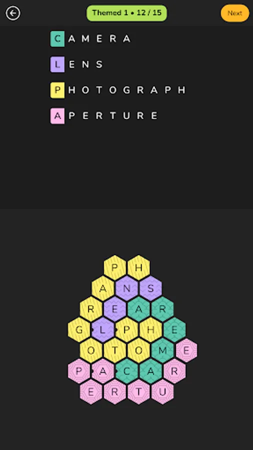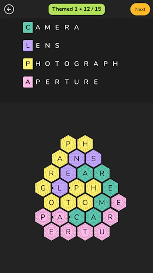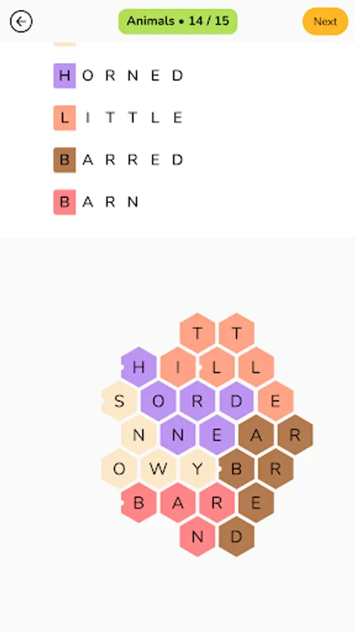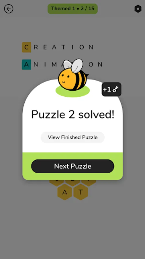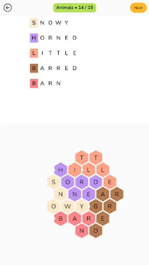 Your goal is to use every letter to form the right words and fill in the honeycomb puzzle, but this can be quite tricky on a hexagonal grid. Many levels feature uncommon words, words with snaking paths, and red herrings to misdirect you. It's satisfying to beat each level, and a cute bee will pop out to celebrate when you do!