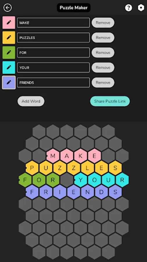 • Use the Puzzle Maker to create your own puzzles for your friends to solve, using the same tool and dictionary that the developers use!