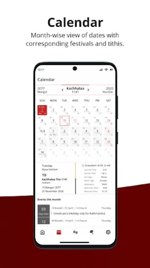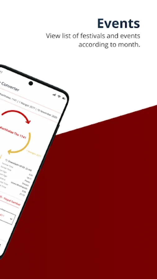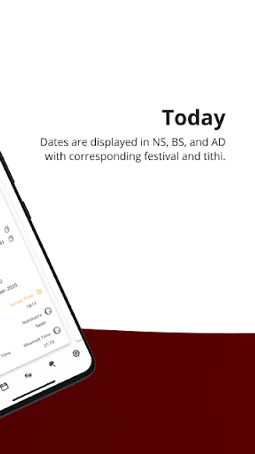 Nepal Sambat Calendar is a mobile based application to help you identify and keep track of all important dates, events, and festivals that fall within Nepal Sambat year. This application has features such as daily events view, monthly calendar view, list of festivals, and date conversion between NS, BS and AD.