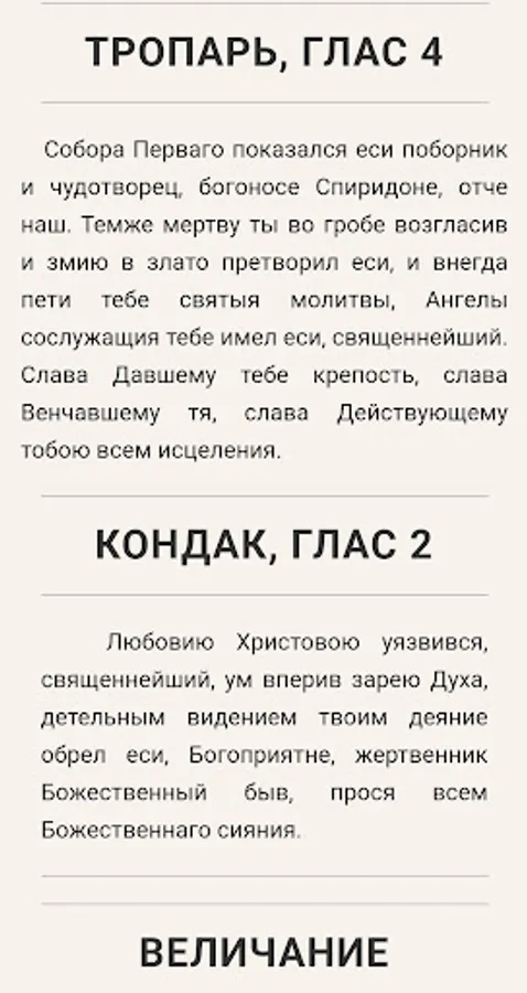 The Akathist to St. Spyridon, Bishop of Trimifunts in the temple is performed on Tuesdays after the end of Vespers at 18:00. Preliminarily check the schedule of services by phone: +7(495)629-66-16