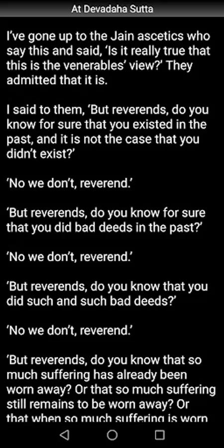 The Buddha tackles a group of Jain ascetics, pressing them on their claim to be practicing to end all suffering by self-mortification. He points out a series of fallacies in their logic, and explains his own middle way.
