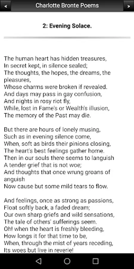 The life-time work of Charlotte Bronte's poems are collected here in this app