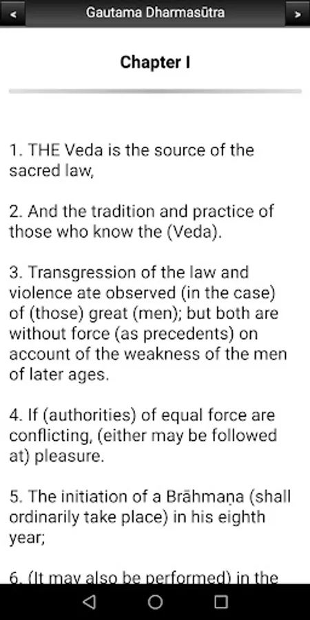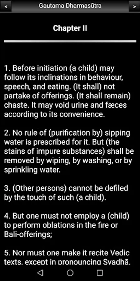 Gautama's Dharmasūtra is believed to be the oldest of the four Hindu Dharmasastras, It survives as an independent treatise, not forming part of the Kalpa-sūtras; it therefore contains no praśnas (questions) or books.