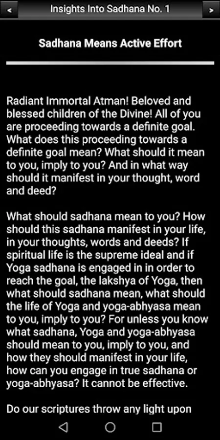 The talks contain penetrating insights into the meaning and purpose of sadhana as Swamiji takes advantage of these occasions to point out the fundamentals required for success in the spiritual quest such as devotion to the goal, discrimination, obedience to the Guru, faith in God and oneself, and a divinely lived life.
