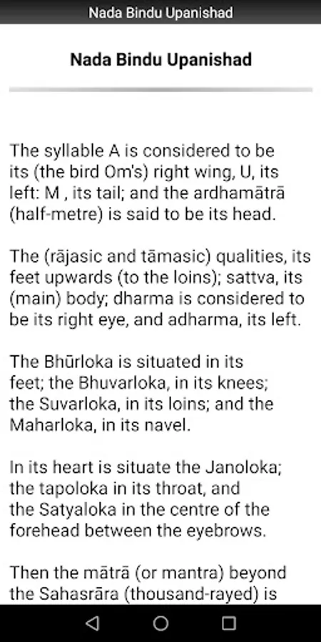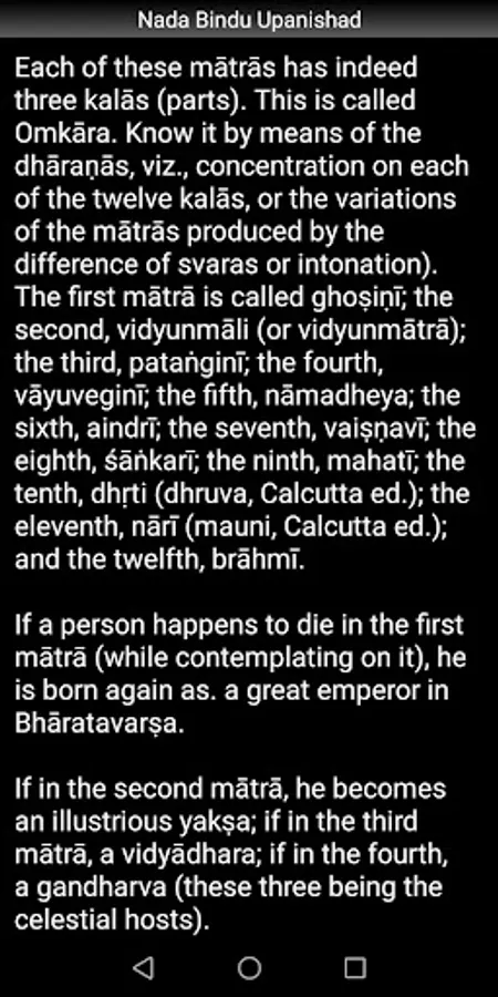 The Nada-bindu-upanishad opens with an equation of the Atman (soul) and Hamsa (swan). It further discusses concepts related to Yoga and Dharma and expounds the mystical philosophy behind ‘Omkara’. The compound Nada-bindu literally translates to “Sound-seed”.