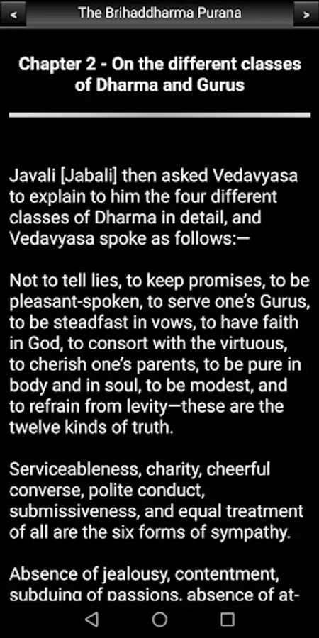 The English translation of the Brihaddharma Purana, one of the several minor or Upa Puranas, and represents an epitome of several important (Major) Puranas. In this book one can observe the attempts made to reconcile the three main forms of Hindu worship, viz. the Shaiva Vaishnava and Tantrika (worship of God in the form of Kali, Durga, Ganga, and other female Gods).