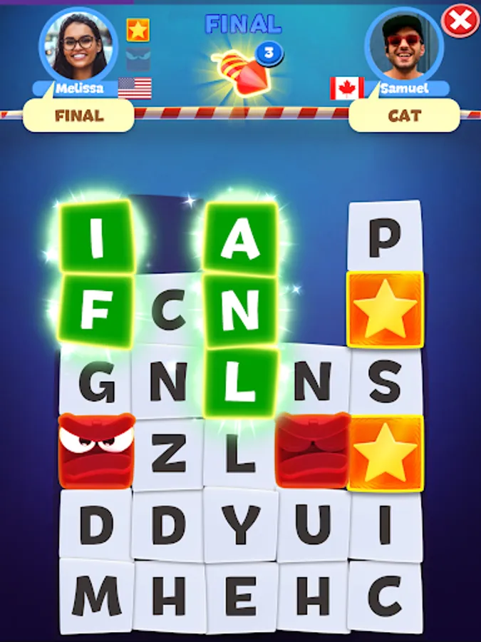 - for every 5 (or more) letter words your opponent gets an Angry Cube
