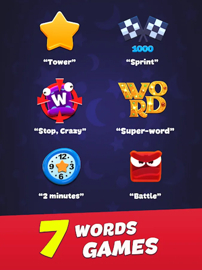 Use all your language skills while making different words from letter cubes in one of 6 game modes: