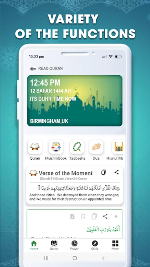 The Quran App is the ultimate tool for Muslims seeking to deepen their connection with their deen. With features like audio recitations, bookmarks, notes, and daily reminders, this app makes it easy to stay connected with the holy Quran. But it's not just a Quran reader - it also includes an adhan reminder, namaz time calculator, and a qibla finder to help you stay on track with your daily prayers. The qibla direction is accurately determined using the device's GPS, making it easy to find the right direction for your prayers no matter where you are. The Quran App is the comprehensive solution you need to enhance your spiritual journey.