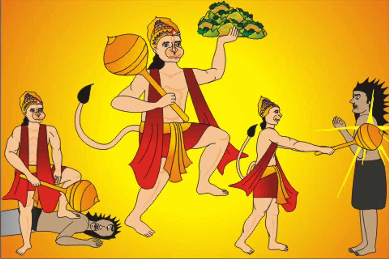 The statue of hanuman holding a mace (gadha) are worshiped in many Hindu temples knows as Hanuman Mandirs and is always been a sign of hope and inspiration. Hanuman is a noble hero and an ardent devotee of Lord Hanuman.