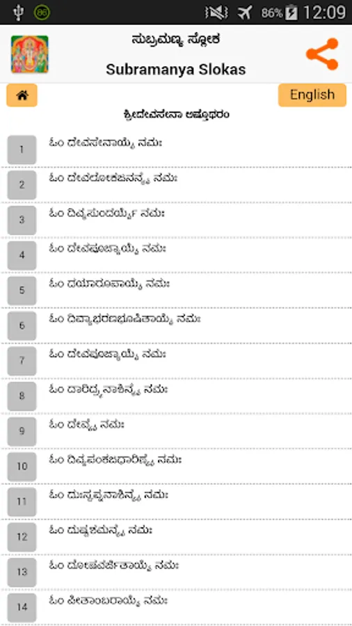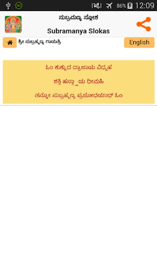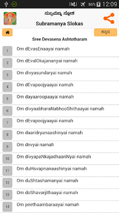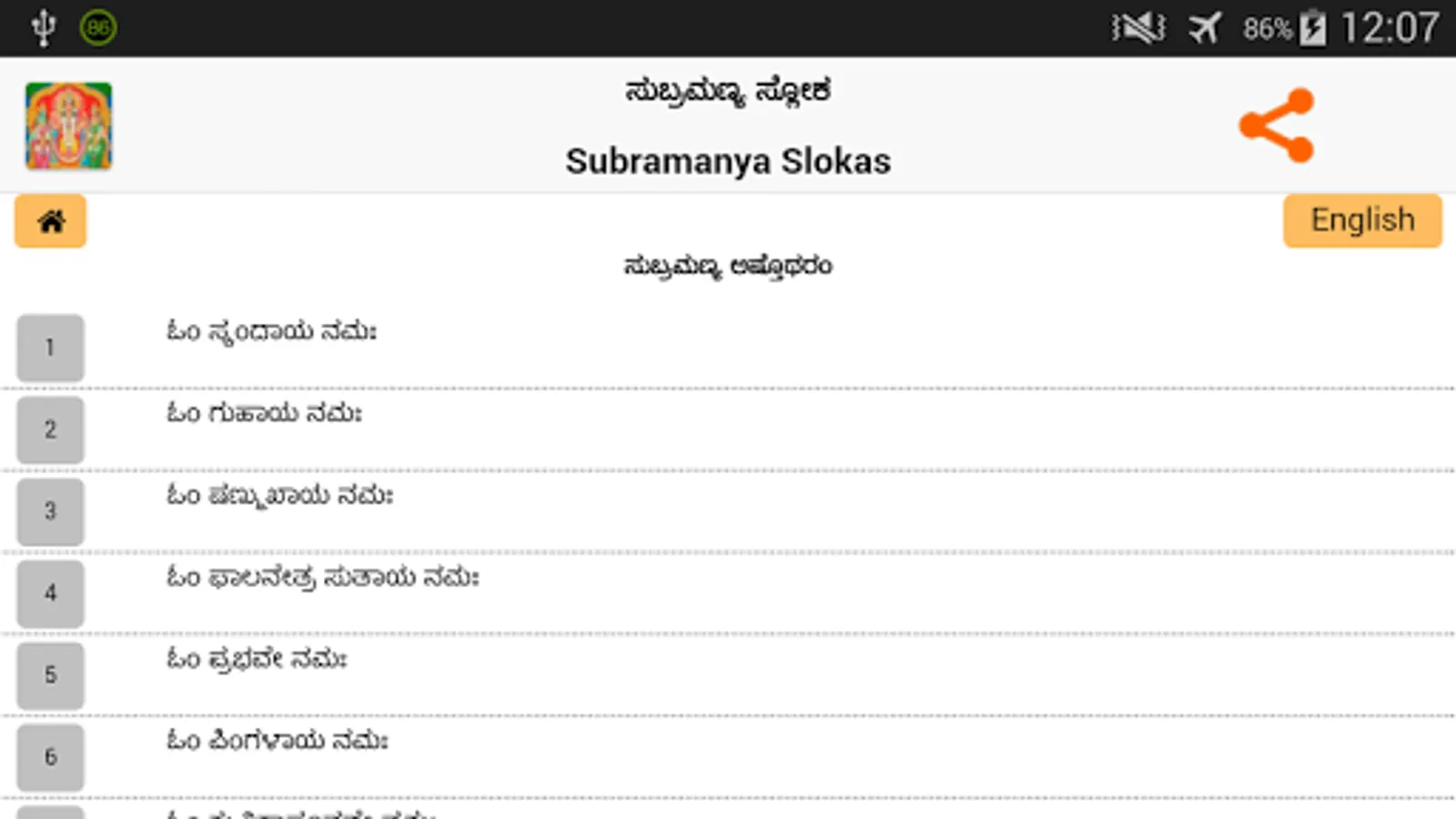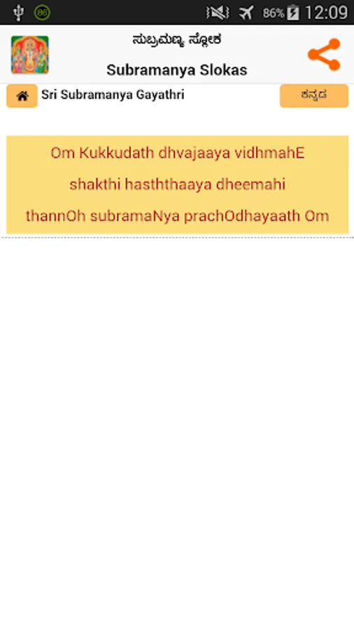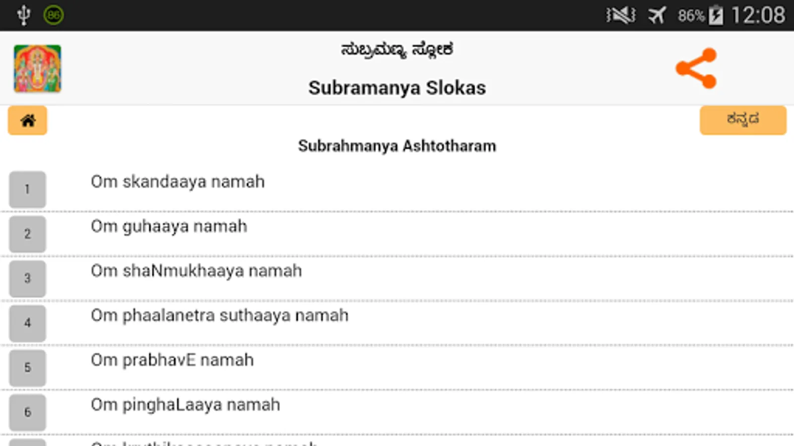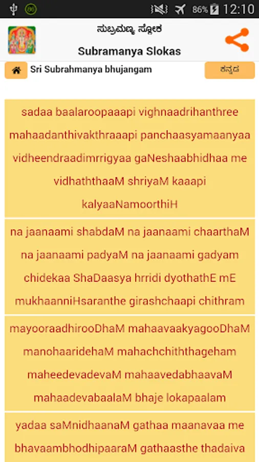 This application is in devotion towards Lord Muruga. It has the below below slokas and manthras in Kannada and English.