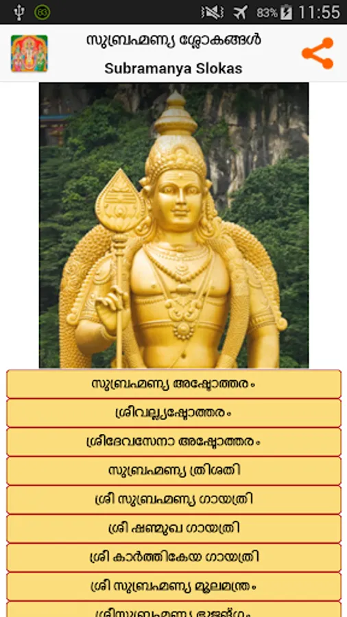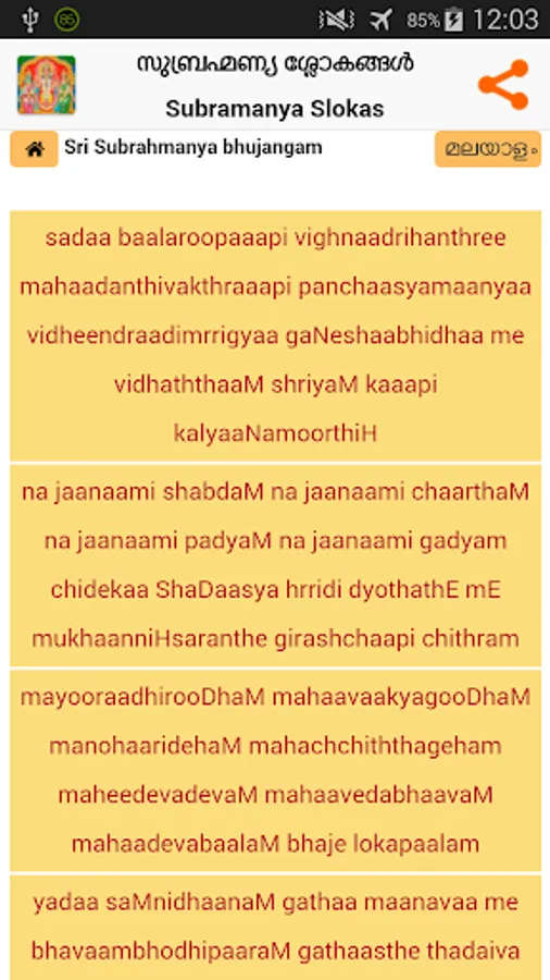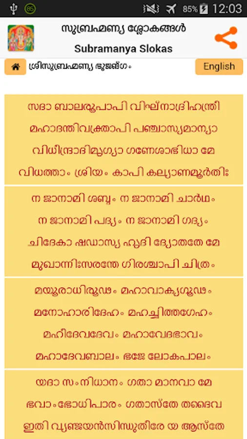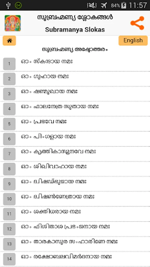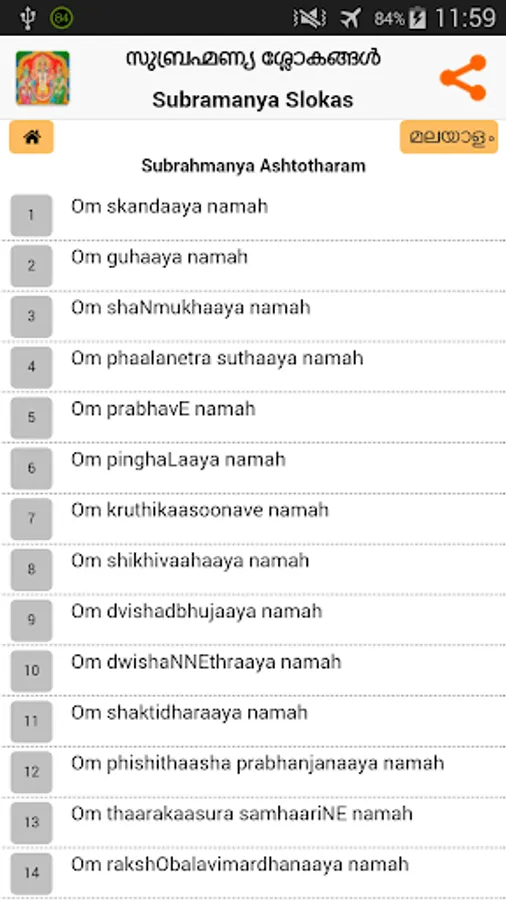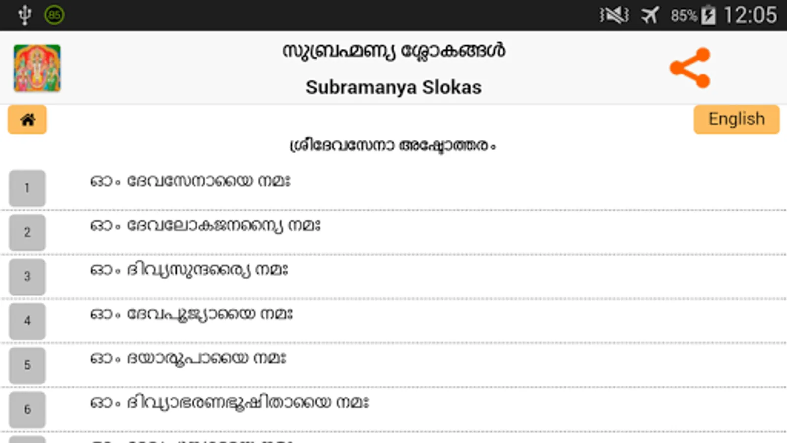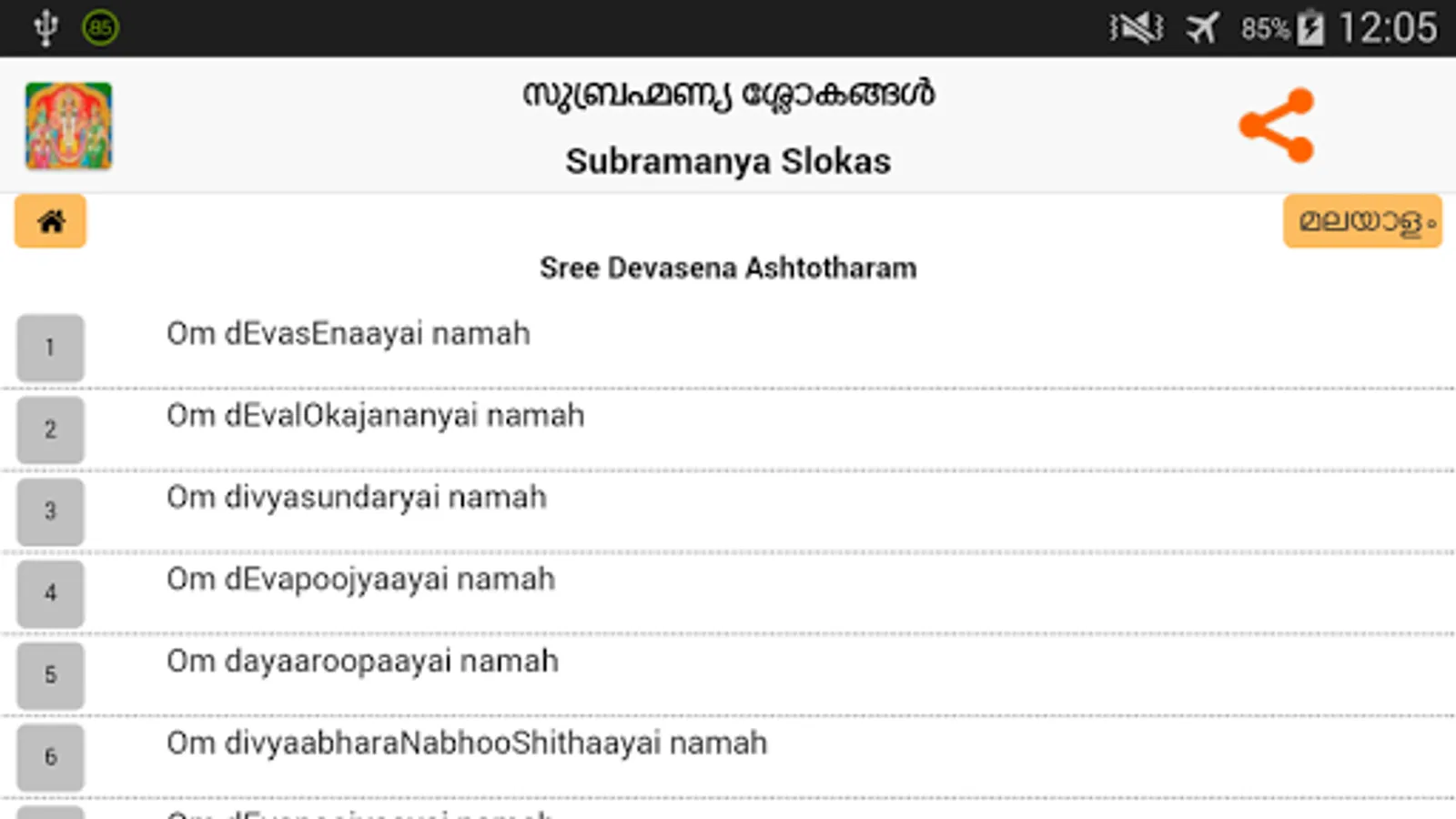 This application is in devotion towards Lord Muruga. It has the below below slokas and manthras in Malayalamand English.
