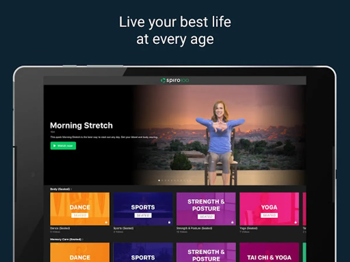 - Access to live classes with Spiro100 trainers and fellow Active Agers.