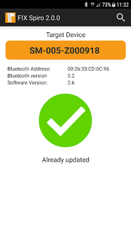 The App can automatically update the internal software (firmware) and Bluetooth firmware of MIR compatible "smart" devices. FIX Spiro is not a medical app and does not perform any kind of medical test.