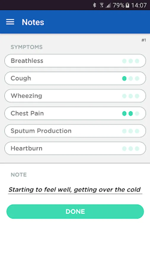 The APP handles ONLY ONE PATIENT AT A TIME. When a new patient is added the old one is deleted. The test results are automatically stored on the smartphone and can be displayed later. For each session test the user can add useful information such as symptoms, with the severity grade, and notes.