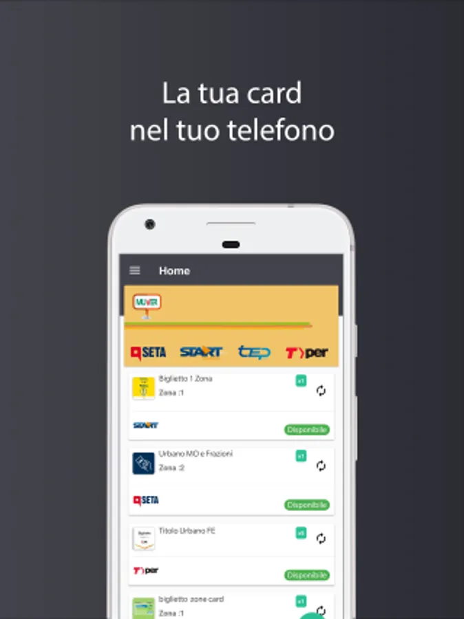Muver is the App of TPER, SETA, START and TEP for the purchase and use of travel tickets through Android smartphones with NFC technology.