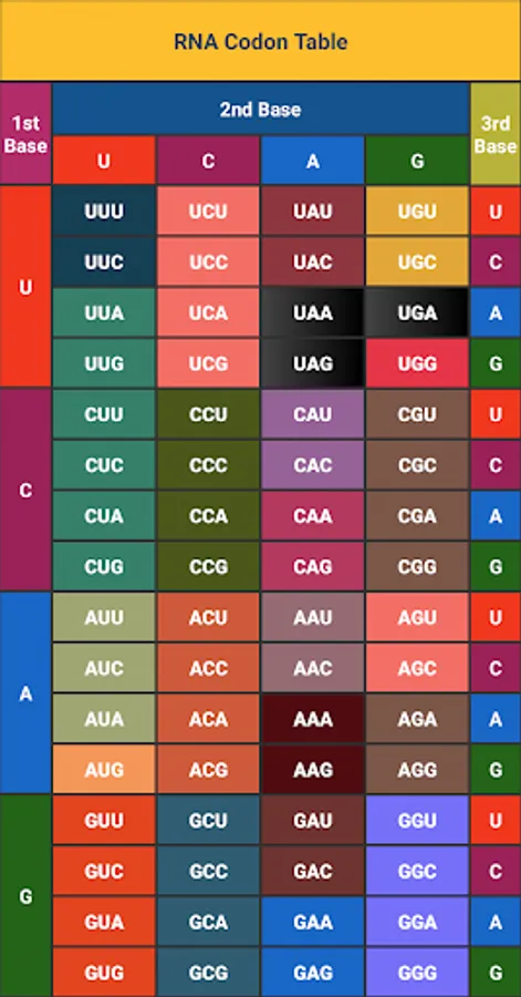 1. The Genetic Code Table (Codon Combination) is Shown.
