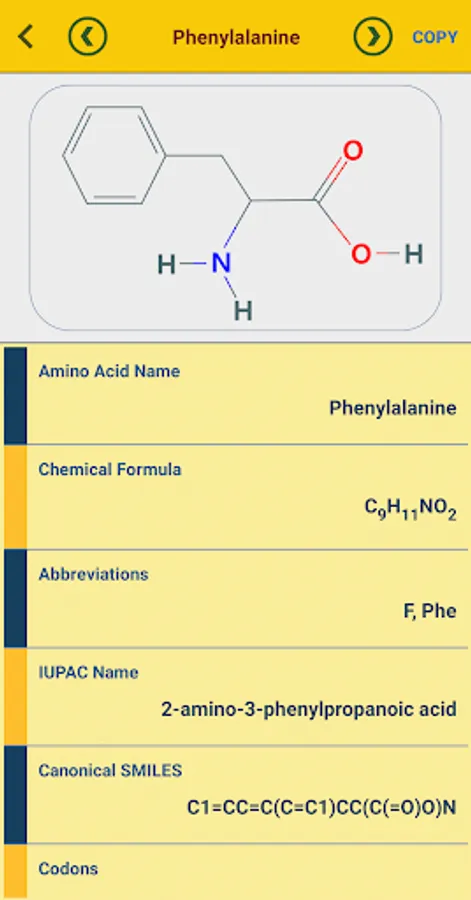 2. Touch the Genetic Code Symbol to Show the Basic Information of the Corresponding Amino Acid.