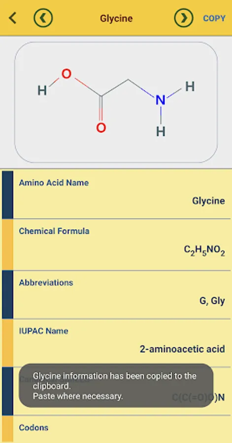 3. Copy the Amino Acid Information to the Clipboard (COPY Button) to Paste the Amino Acid Information where Necessary.