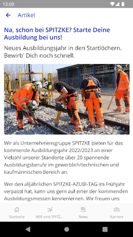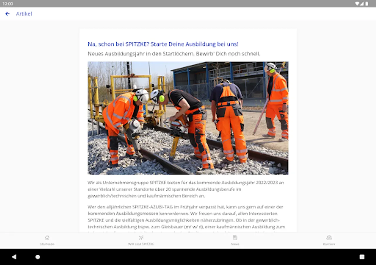 We are making Europe's rail infrastructure fit for the future and are focusing on sustainability and climate protection. We - more than 2,300 SPITZKE employees who shape the rail network of the future and thus ensure fast, environmentally friendly connections. Efficient, dialogue-oriented and good communication is all the more important to us, which we promote with our SPITZKE app. For us, the exchange with our clients, partners, employees and all those interested in the SPITZKE Group is essential.