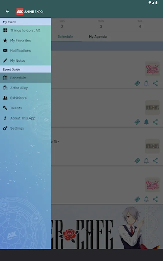 The official guide and mobile companion for all things Anime Expo! The Anime Expo App is your source for all the latest information for everything Anime Expo, Including: Event Updates, Announcements, Schedule, Guest Information, Exhibitor List, Artist Alley List, and more!