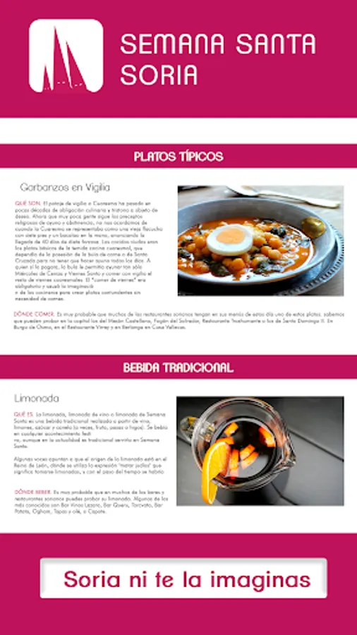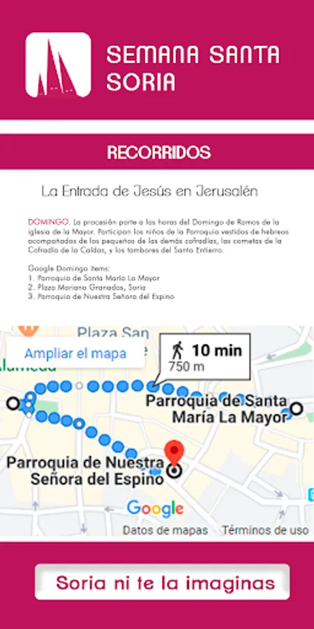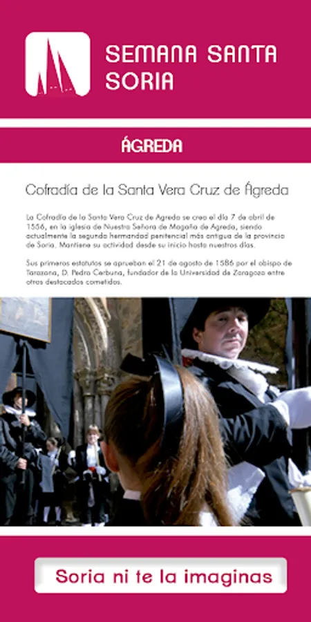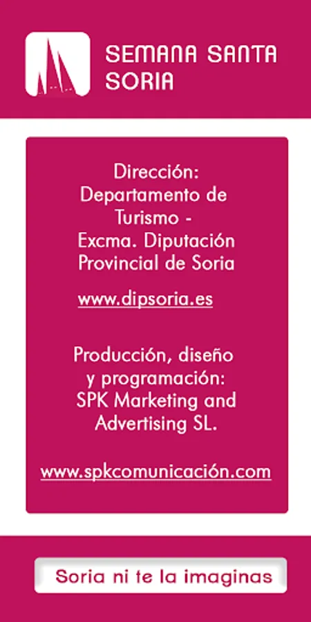 "Sober, austere, devotional and typically Castilian" this is the Holy Week in Soria, and this is what you will be able to find in the APP: History of the Brotherhoods, details of the Steps, Routes, Curiosities, etc. It is the APP developed by the Department of Tourism, of the Soria Provincial Council.