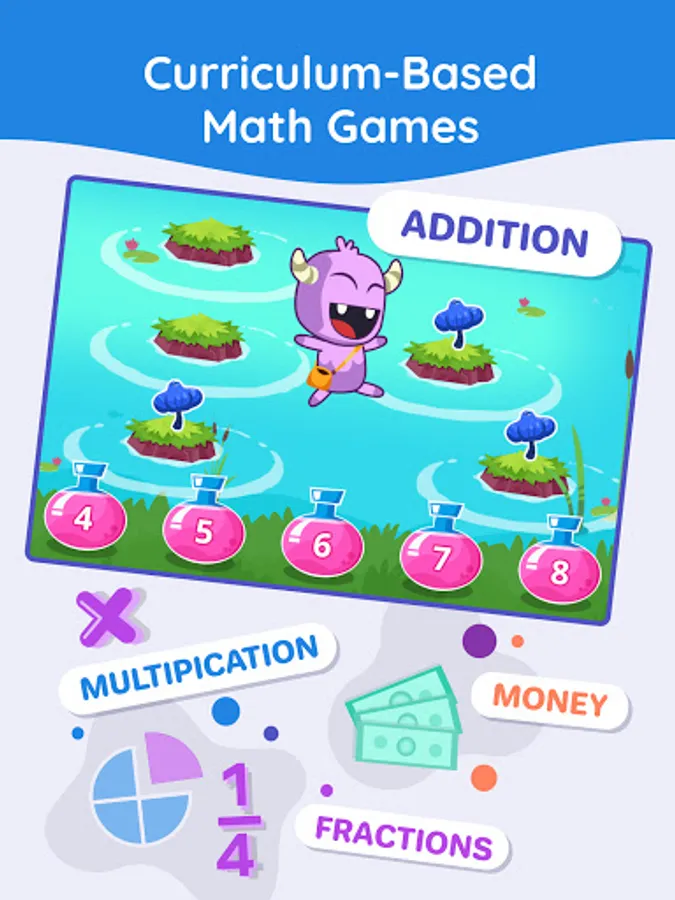 • 4th Grade: Advanced learning games & word problems that cover everything - addition, subtraction, multiplication, division, fractions.