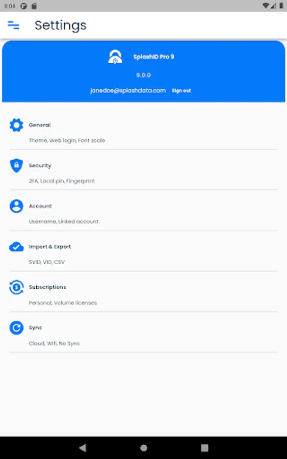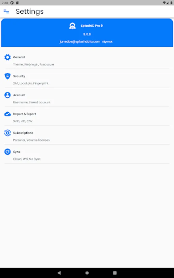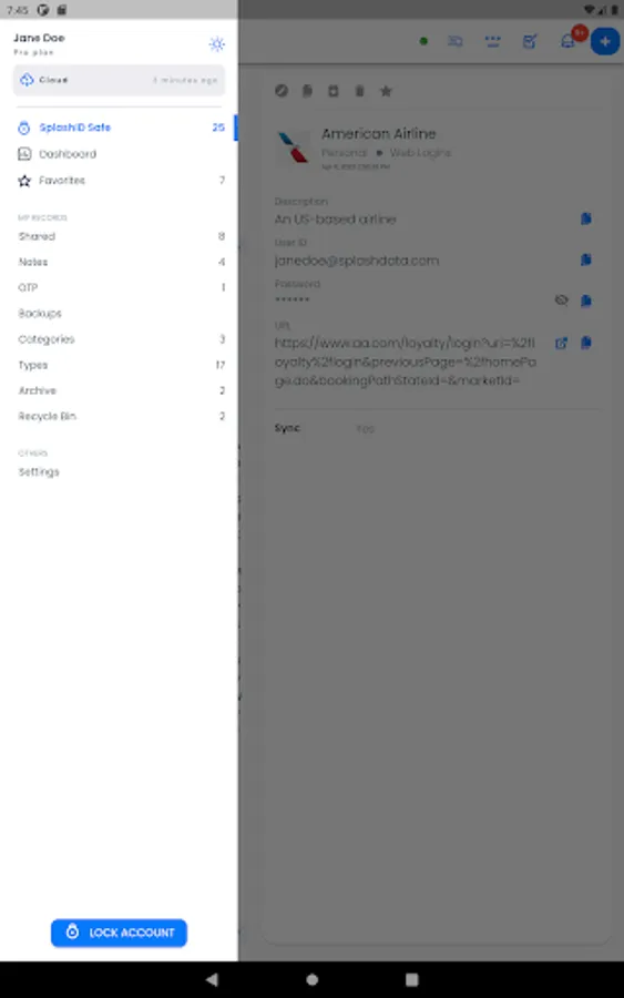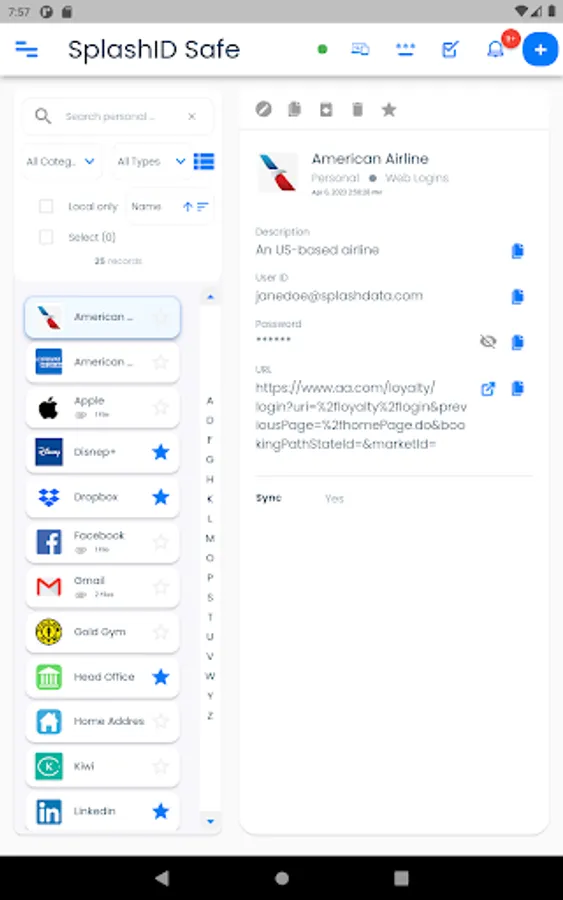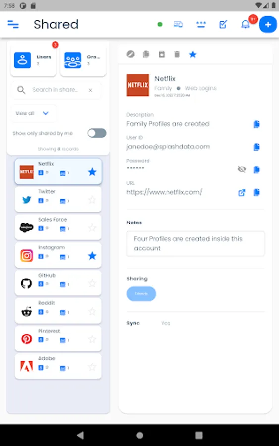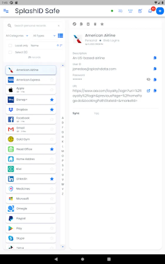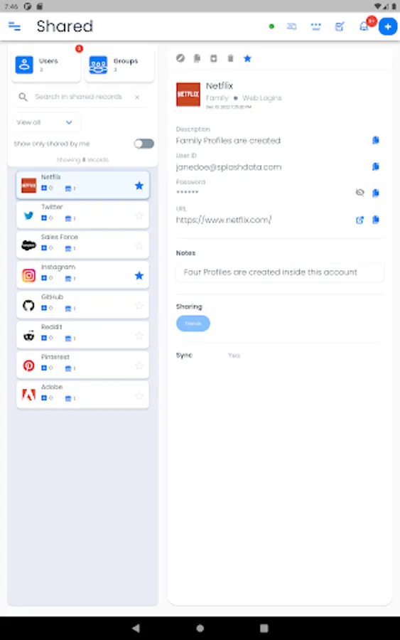 You can securely share the information in SplashID Pro 9 with your family, friends and colleagues by creating trusted relationships and groups with them. Syncing this information with cloud sync is a great way to keep all updated with the important information they need.