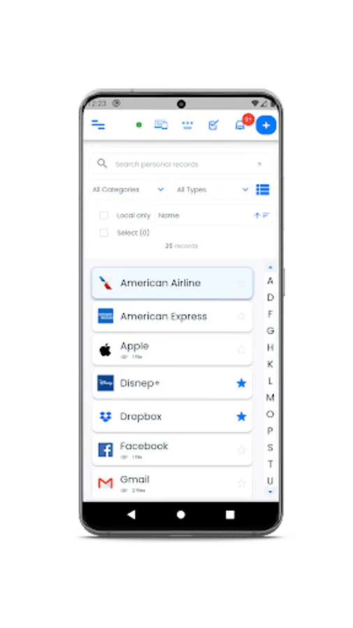 Store your one time password generators and notes along with your other information in records. Use the favorites, OTP and notes view to take your personal productivity to the next level.