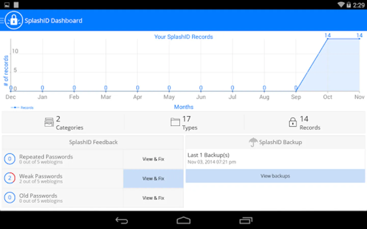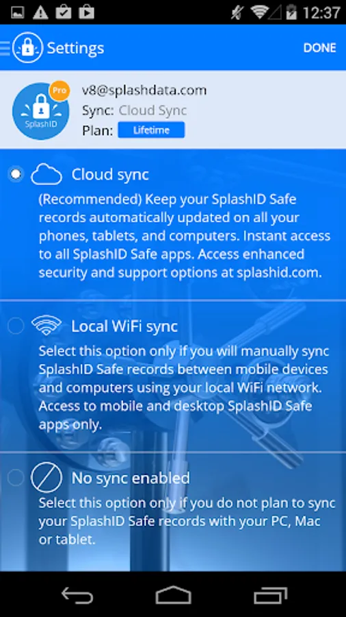 The app is free to use with basic record storage functionality. A one-year subscription to SplashID Pro gives you many additional features like sync across devices, Security Dashboard and Automated Backup for just $19.99. It's auto-renewed at the end of the year, or easily cancelled. Refer a friend to SplashID, and you both get a 25% discount on SplashID Pro!