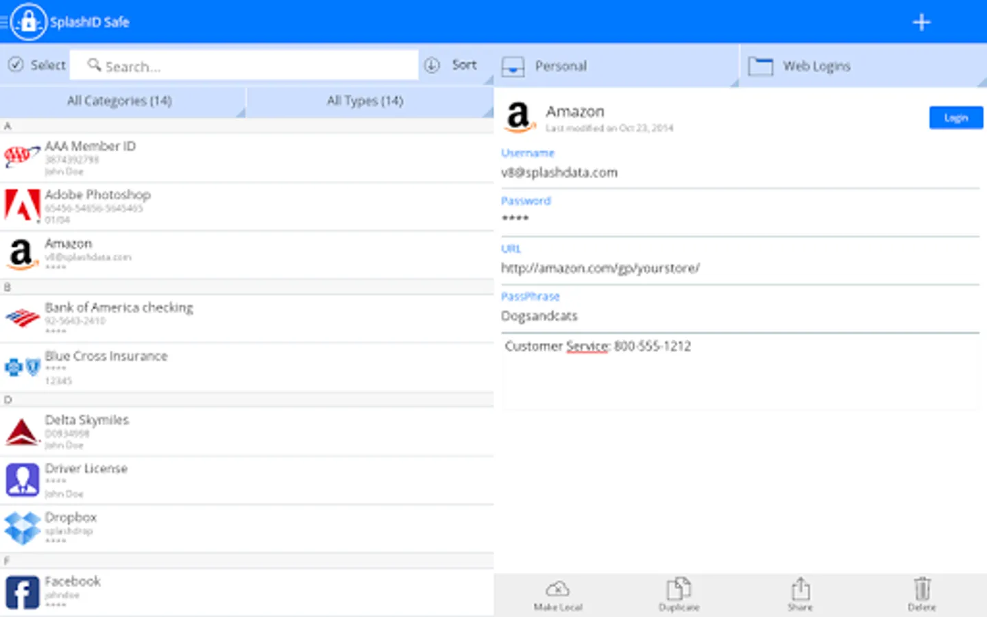 No other password app delivers SplashID's combination of features, reliability, and security. Compare SplashID to others: http://splashid.com/personal/compare.html