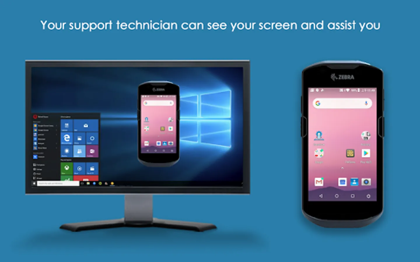 This add-on enables remote control of a Zebra device through the Splashtop SOS app or Splashtop Streamer app by a technician using Splashtop Rugged & IoT Remote Support with proper commercial license required.